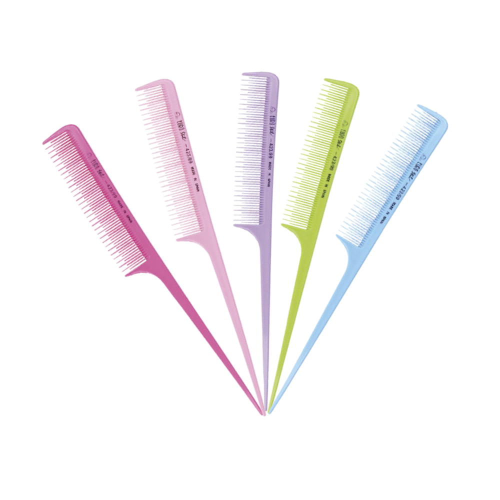 Műanyag váltottfogú stíl fésű több színben.