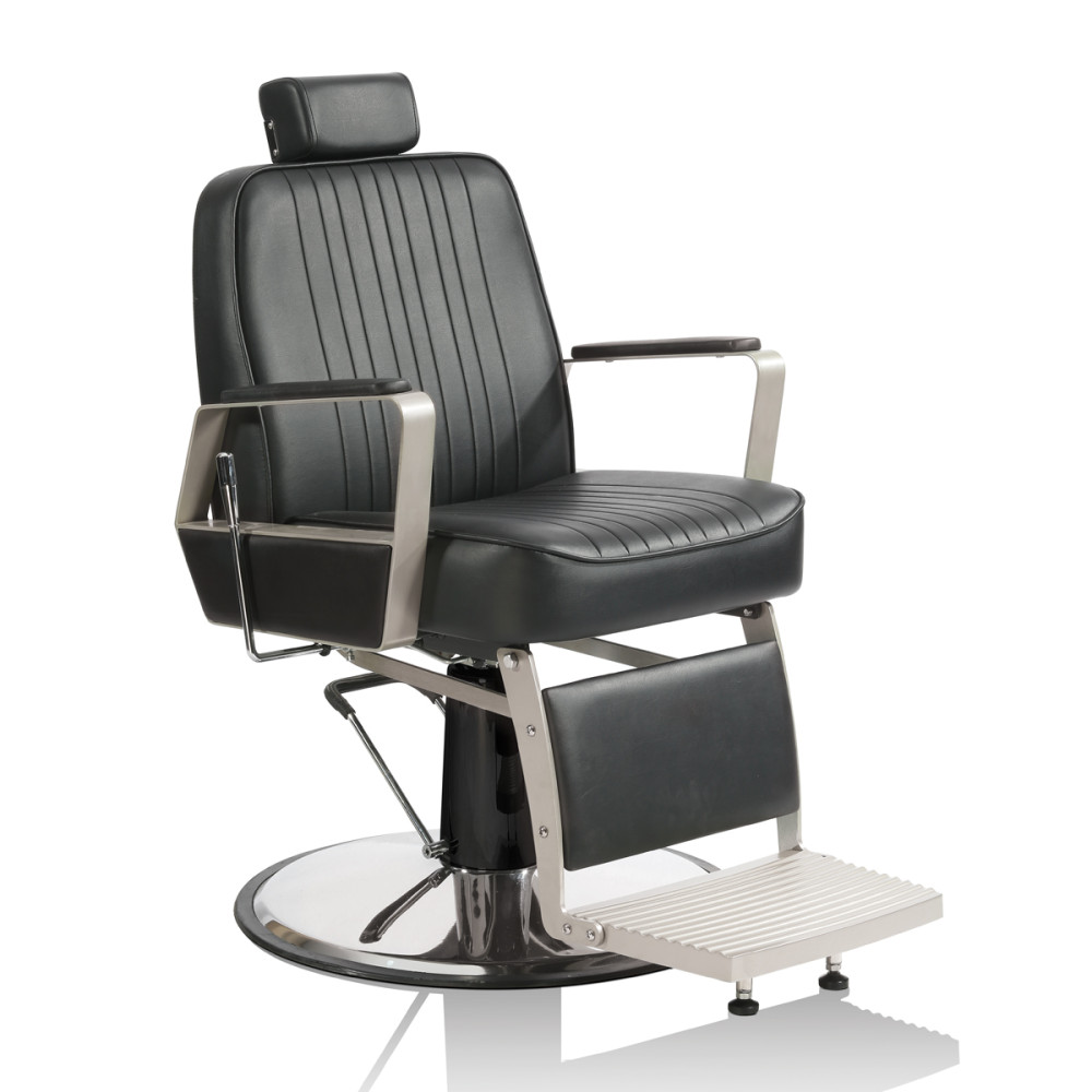 A Hair Graffiti elegáns és nagyszerű barber szék, dönthető háttámlával, lábtartóval és állítható fejtámlával, fekete műbör kárpitozással áll rendelkezésre.