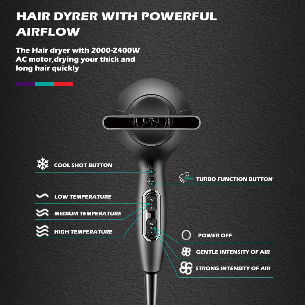VGR Prof. Hajszárító Professional Salon Hair Dryer 2000-2400W V-450
