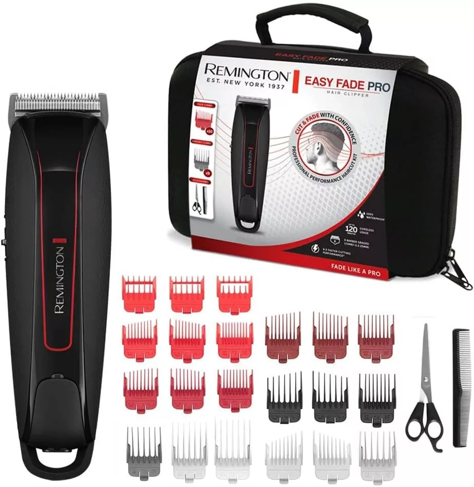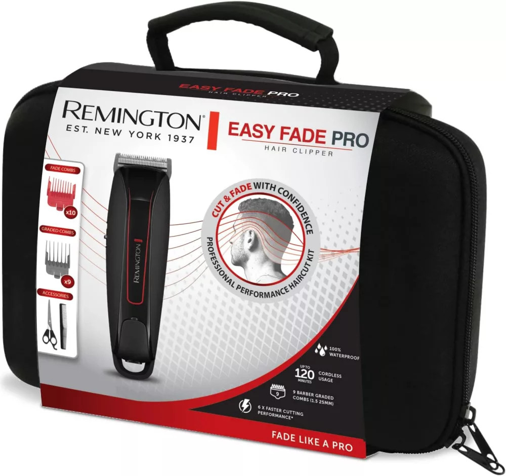 A Remington Easy Fade Pro hajvágó egy olyan nagysebességű hajvágó 6-szoros vágóteljesítménnyel*, amely tökéletes az átmenetek és fokozatok készítéséhez. A hozzá tartozó 10 különleges kialakítású átmenetvágó vezetőfésűt a különböző hajhossz fokozatok egyszerű összedolgozására tervezték, hogy ne kelljen többféle eszközt használni a kívánt hatás eléréséhez. A 9 barber shop minőségű fix fésű választéka ideális különböző hajhosszak trimmelésére. Szóval, ha új vagy az átmenet- és fokozatkészítésben, ez a hajvágó könnyebbé teszi frizurád felfrissítését, mint gondolnád.
