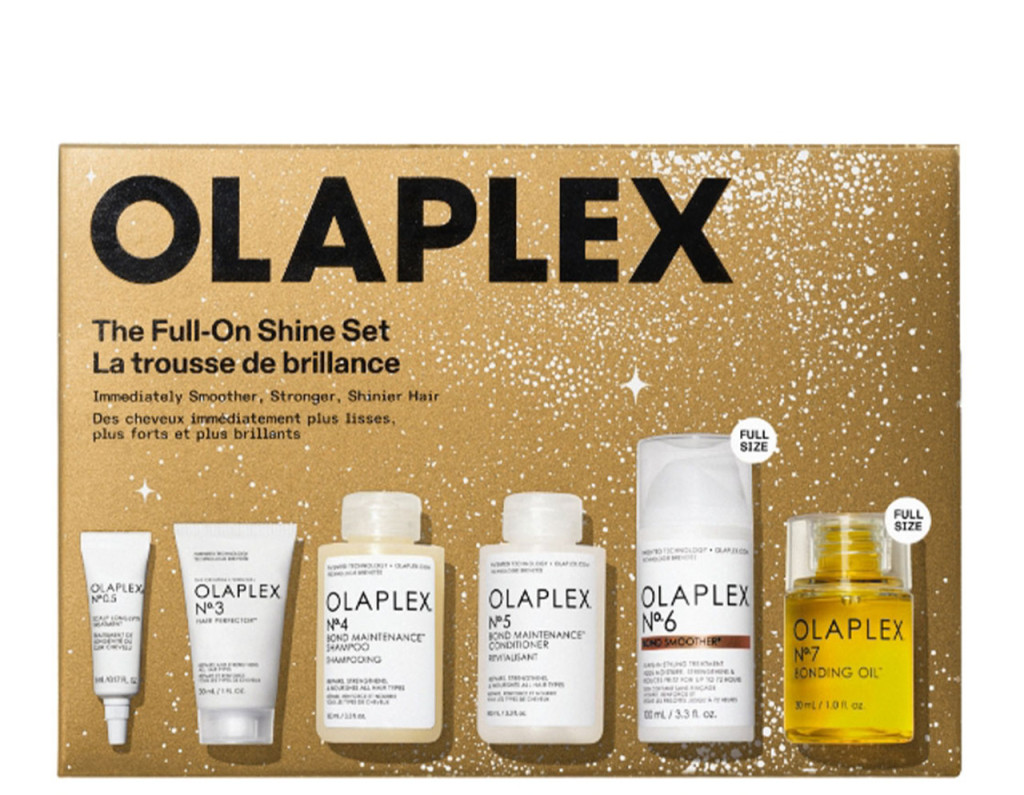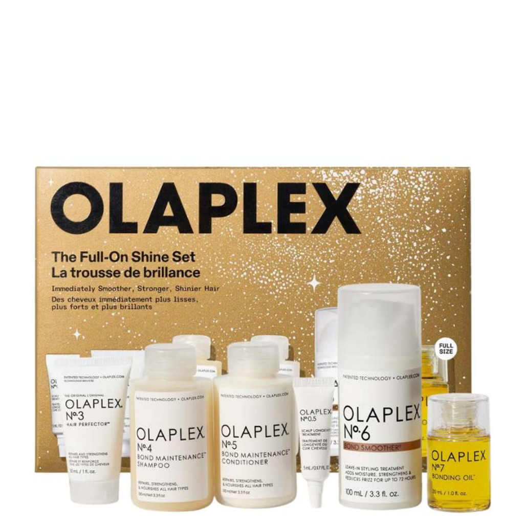 A Full On Shine egy limitált kiadású Olaplex ajándékcsomag, amely teljes körű hajápolási rutint kínál a fényes, sima és egészséges hajért. A csomag minden hajtípusra alkalmas, különösen ajánlott festett, szőkített vagy sérült hajra.