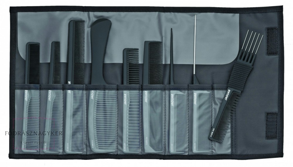 9 különböző fésűmodellt tartalmaz praktikus tartóban.